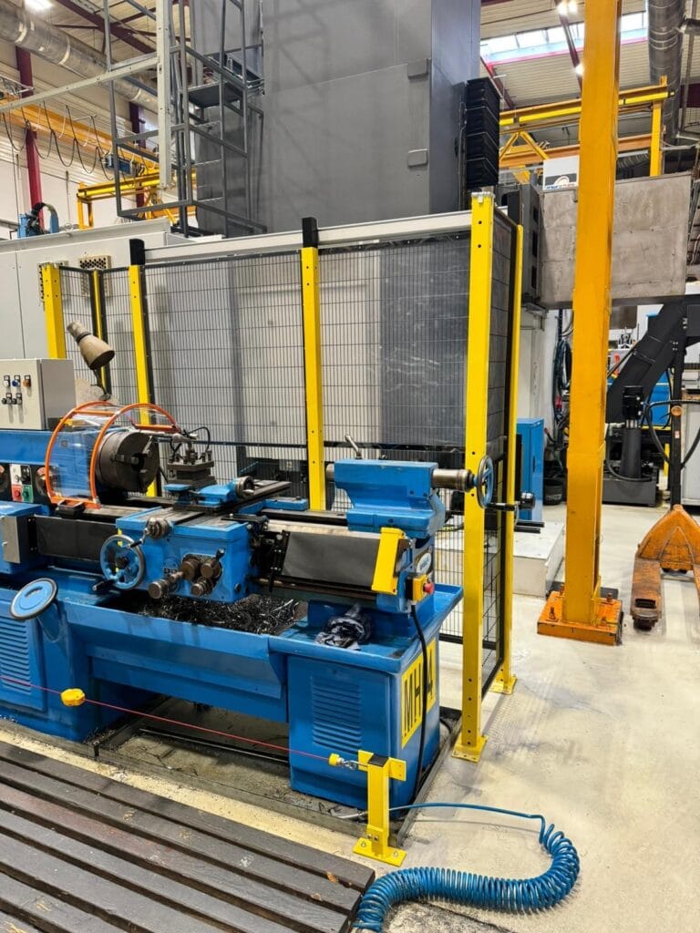 Solon use our Access safety fencing product to create back guarding on lathes.This is a cost-effective, fast and safety compliant way to guard the rear of most lathes.Please see example photos from an installation we did for a client in Europe.We usually supply our lathe back guarding solutions with an access door complete with key lock and key.This mesh back guard enhances operator safety. Access is only given to those who are authorised to enter the area for swarf removal etc.Access safety fencing is usually available from Solon Systems within 2-3 working days so it's a fast solution saving you time and worry.Email us with a photo of your lathe: sales@solonsystems.co.uk